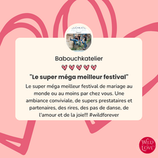 Au Wild in LOVE, on respecte ton travail en tant que professionnel du mariage. C'est pourquoi on sélectionne avec soin nos exposants. On recherche des personnes respectueuses de leurs clients, et qui partagent nos valeurs éthiques.